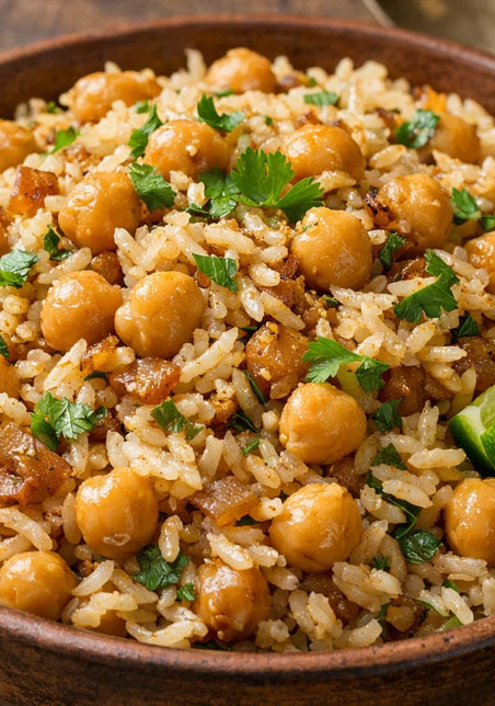 Na lžíci oleje krátce osmahněte 1 lžičku garam masaly (30 sekund), přidejte cibuli a česnek, pak rýži nebo cizrnu. Podlijte vodou nebo vývarem a vařte do měkka. Dochuťte limetkovou šťávou.